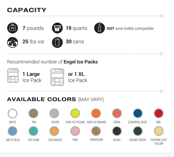 - ENGEL HIGH-PERFORMANCE INSULATION: Features high-grade molded polystyrene foam insulation with hard plastic outer shell heat barrier; Perfect for keeping food and beverages cold on job sites, fishing, camping, travel, tailgates, picnics, and more