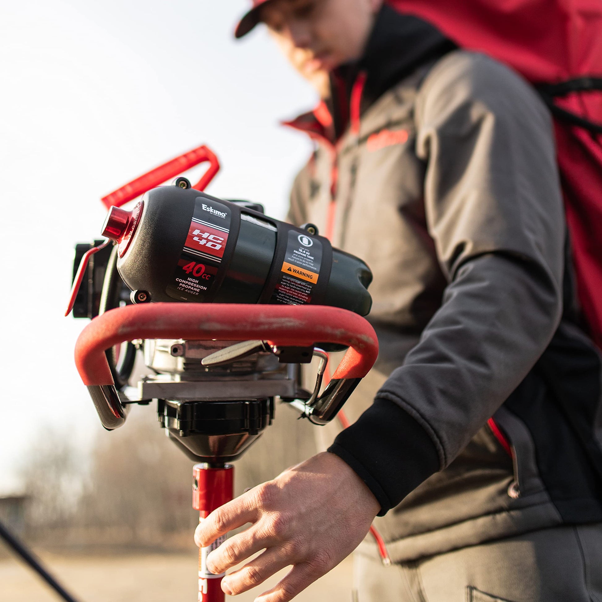 Eskimo HC40Q8 High Compression 40cc Propane with 8" Quantum Ice Auger, Red